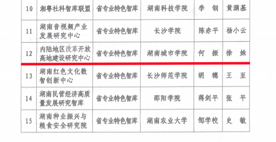 本网讯(通讯员 汤慧)近日,中共湖南省委宣传部印发《关于公布湖南省第二批新型智库的通知》,湖南城市学院建筑与城市规划学院牵头申报的“内陆地区改革开放高地建设研究中心”成功入选,被认定为湖南省第二批新型智库(专业特色智库),标志着学校在服务区域战略决策、推动学科科研与地方发展深度融合方面迈出关键步伐。