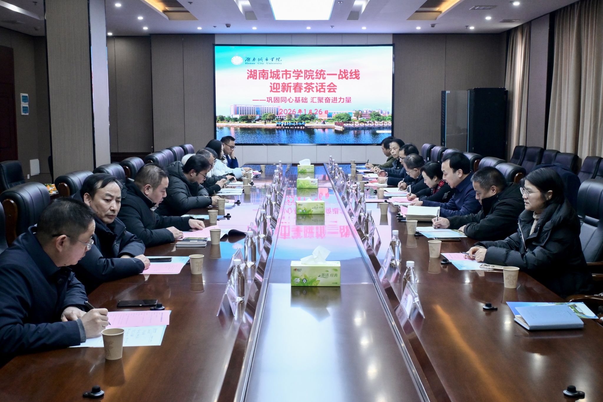 本网讯 1月26日下午,湖南城市学院2026年统一战线迎新春茶话会举行。在校省、市政协委员,市民主党派兼职副主委,各民主党派校级组织主要负责人,校统战团体主要负责人,无党派人士代表等20余人欢聚一堂、喜迎新春、共叙情谊。校党委书记何振,校长陈瑜,党政办、宣传统战部负责人出席会议。茶话会由校党委副书记袁志成主持。