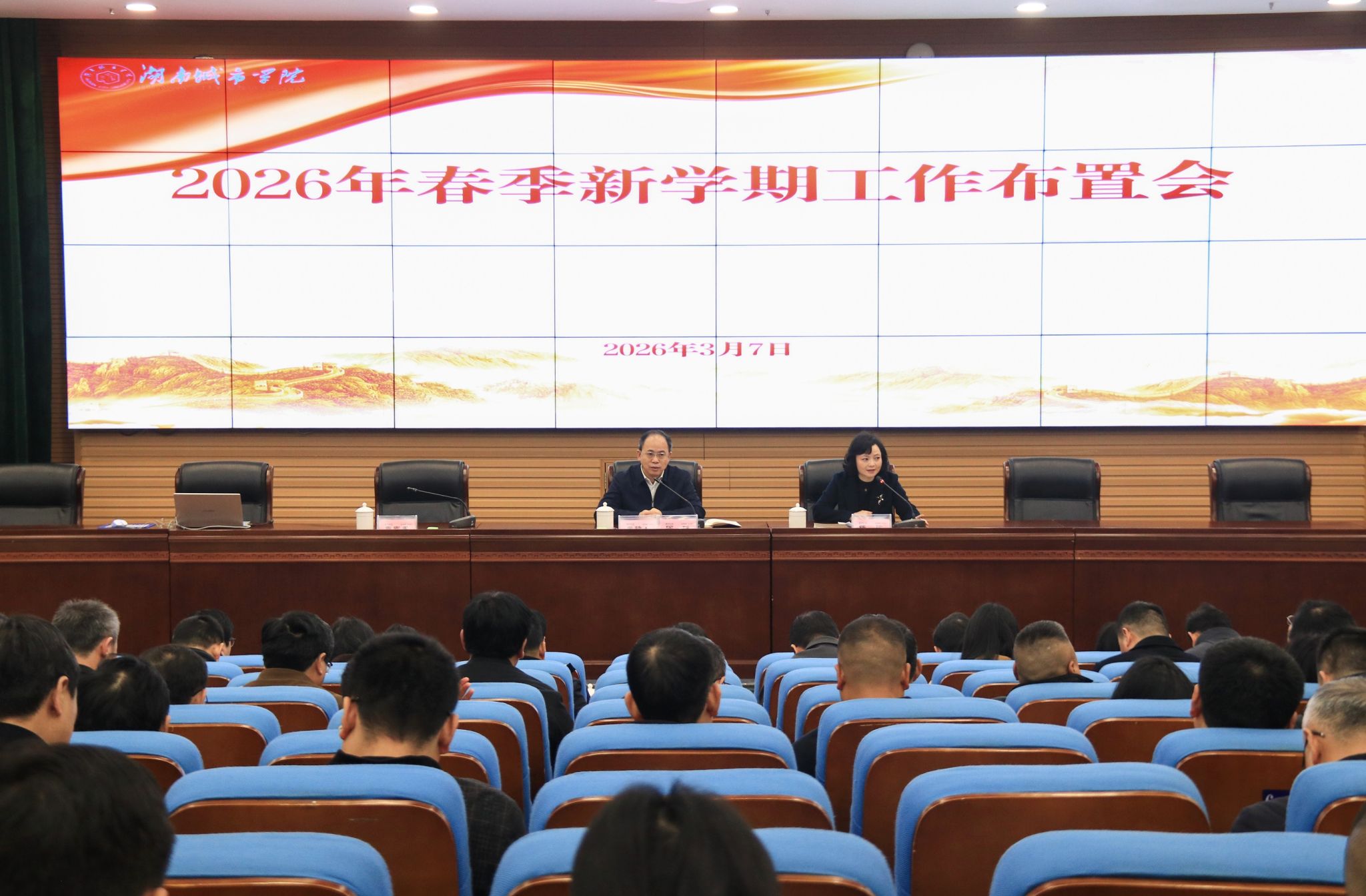本网讯 3月7日,学校召开2026年春季新学期工作会议,部署新学期重点工作,奋力开启学校“十五五”高质量发展新征程。全体校领导出席会议。