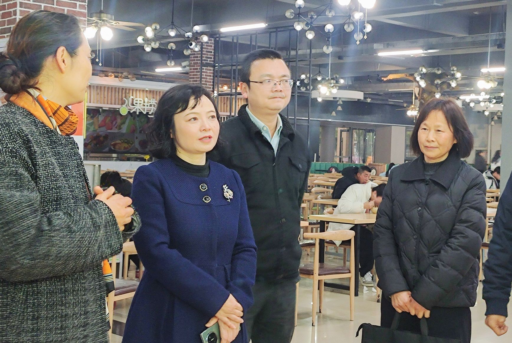 在学生食堂,校领导详细了解菜品营养搭配、定价标准、卫生清洁及学生用餐体验等情况。何振强调,要牢牢守住校园食品安全底线,以营养为核心优化菜品供给,切实保障学生吃得安全、吃得营养、吃得实惠,让校园餐饮服务更有温度、更贴民心。