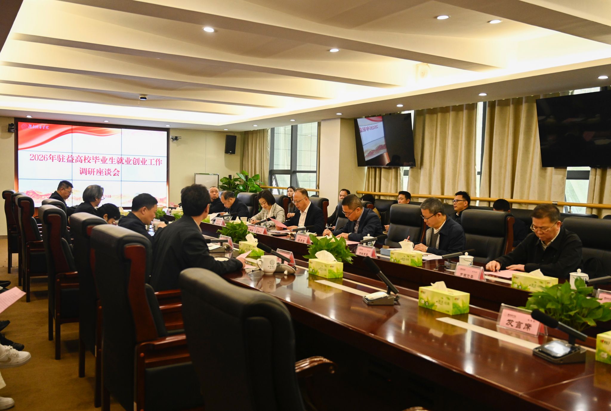 本网讯 4月16日,益阳市市委副书记刘勇会来校调研毕业生就业创业工作,并主持召开调研座谈会。我校校长陈瑜,湖南工艺美术职业学院党委书记陈鸿俊,益阳医学高等专科学校党委书记周奎,益阳师范高等专科学校党委书记李梦醒,益阳市政府秘书长梁成立参加。