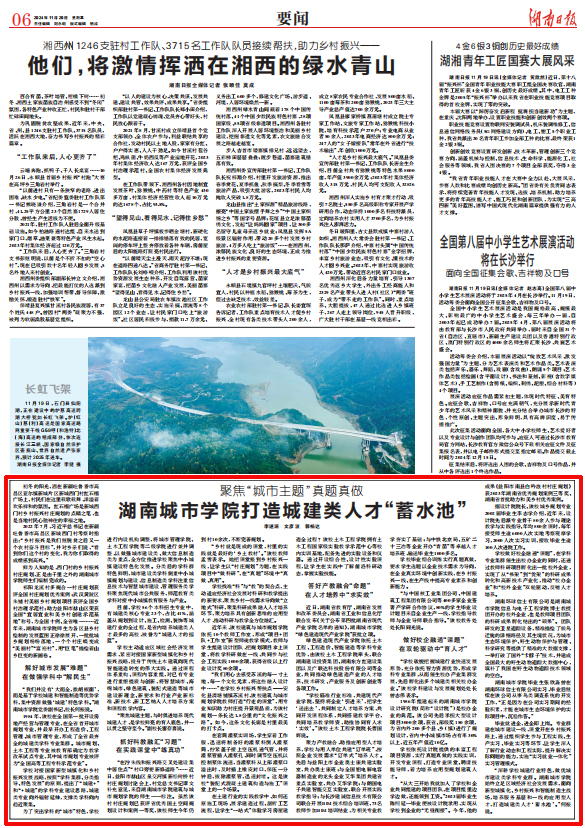 本网讯 11月20日,《湖南日报》06要闻版报道湖南城市学院聚焦“城市主题”,真题真做,打造城建类人才“蓄水池”。全文如下: