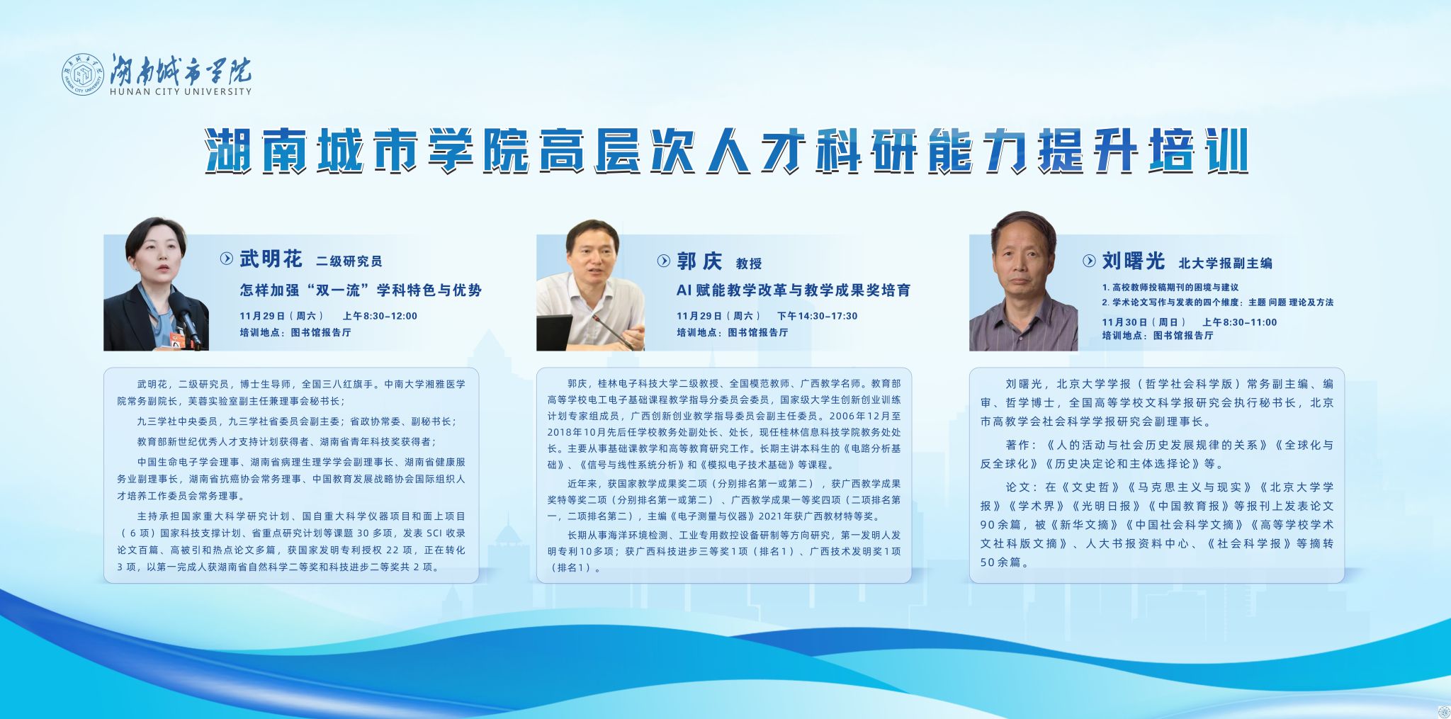 下一条:学术预告|双百论坛第144期:湖南城市学院高层次人才科研能力提升培训