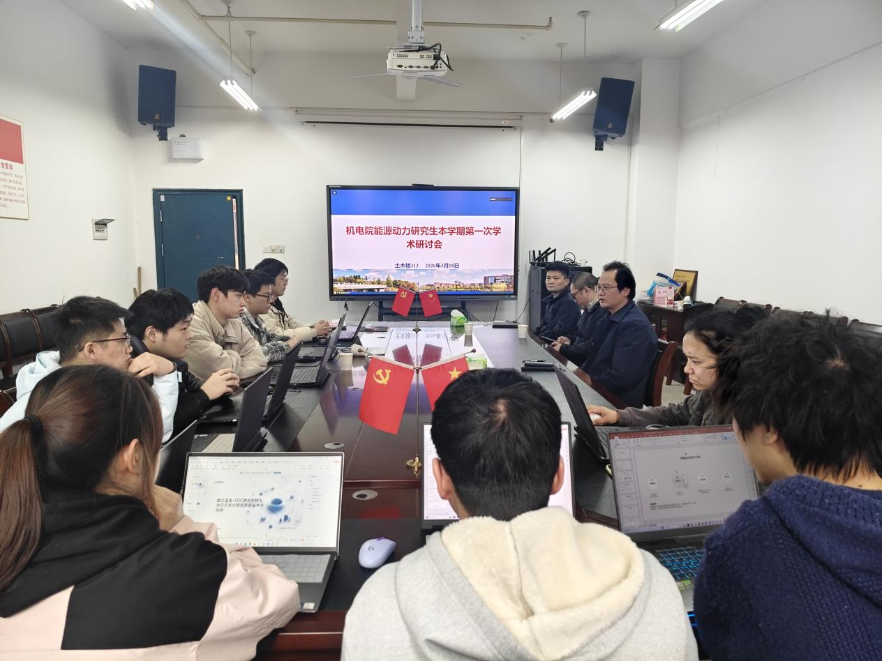 (通讯员:袁聪)2026年3月18日下午14时,机械与电气工程学院能源动力硕士点在土木楼313会议室成功召开本学期第一次研究生学术研讨会。学院院长张光富教授、副院长黄志亮教授,以及邹玮、陈昶、袁越阳、袁聪等多位导师到场指导,能源动力全体15名研究生参加了会议。