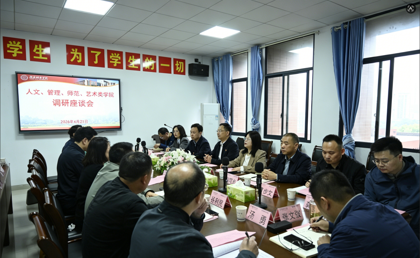 本网讯(通讯员:龚敦)2026年4月21日,学校党委书记王刚带队深入管理学院调研指导工作并召开专题座谈会。党委委员、副校长徐姝出席座谈会并主持会议。党政办公室、宣传统战部、教务处、人事处、学科建设与发展规划处等相关职能部门负责人,人文学院、教师教育学院、美术与设计学院(国际教育学院)、音乐与舞蹈学院及管理学院全体班子成员参加调研座谈。