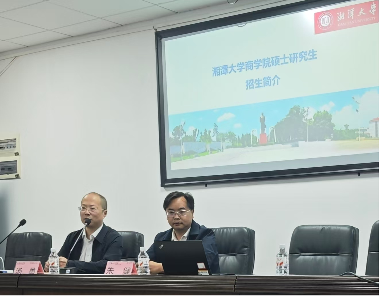 宣讲会伊始,管理学院院长汤勇教授致欢迎辞。他指出,考研是提升个人专业素养和就业竞争力的重要途径,并强调此次宣讲会为两校学子搭建了宝贵的交流平台。汤院长还向在场师生介绍了湘潭大学宣讲团队,包括商学院副院长朱健教授与公共管理学院王晓园副教授。