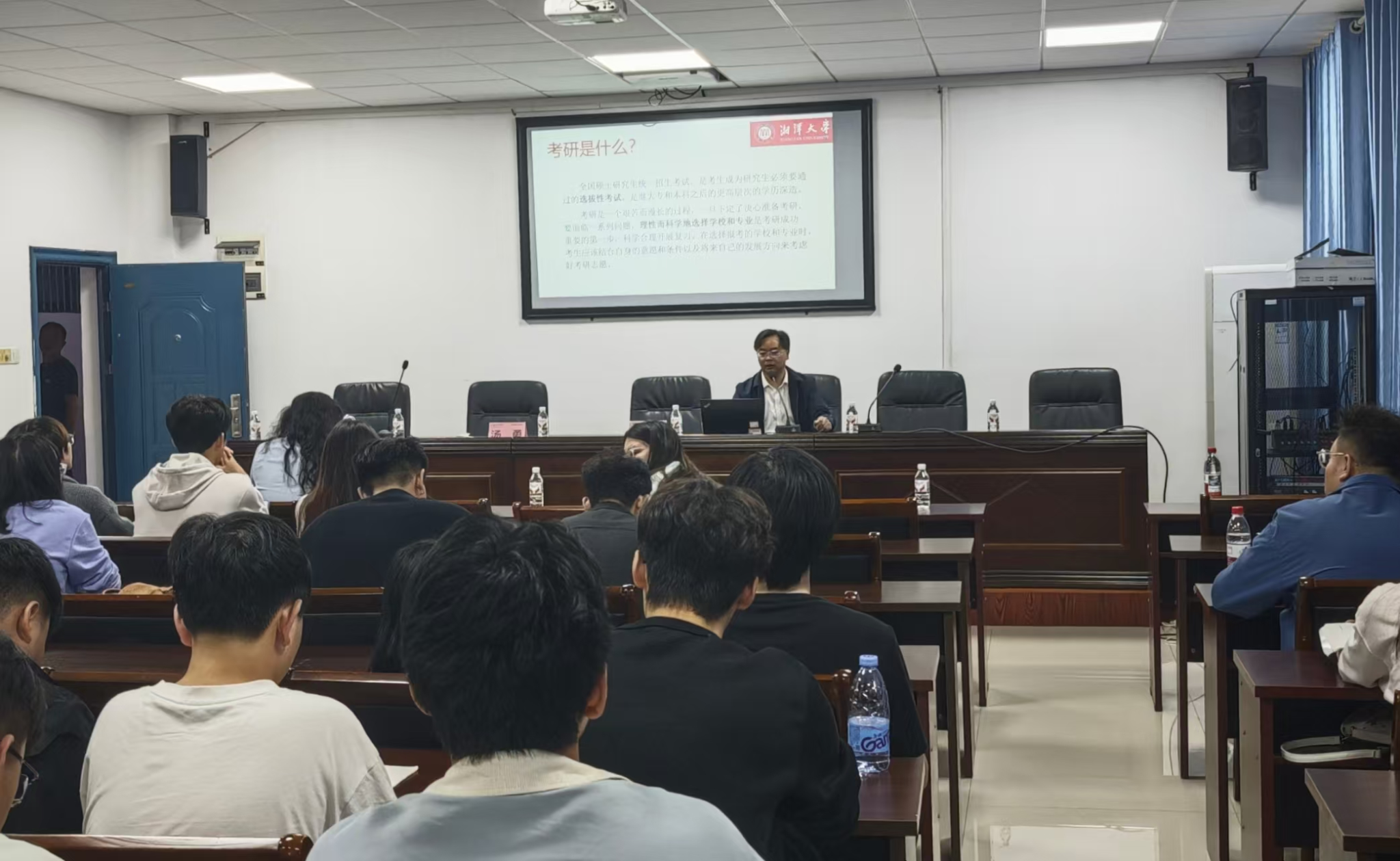 本网讯(通讯员:吕鑫雨、张胜)2025年10月17日下午,湘潭大学商学院与公共管理学院在我校管理学院504会议室联合举办考研宣讲会。现场气氛热烈,座无虚席,吸引了众多有意向考研的学子参与。